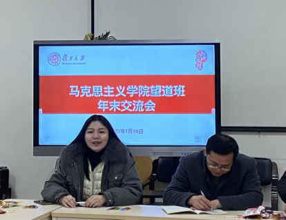 1月14日下午,人妻 望道班于光华楼西主楼601会议室举行年末交流会。学院副院长肖存良、党委副书记潘孝楠与全体2020级本科生出席交流会。会议由辅导员陆婷婷主持。